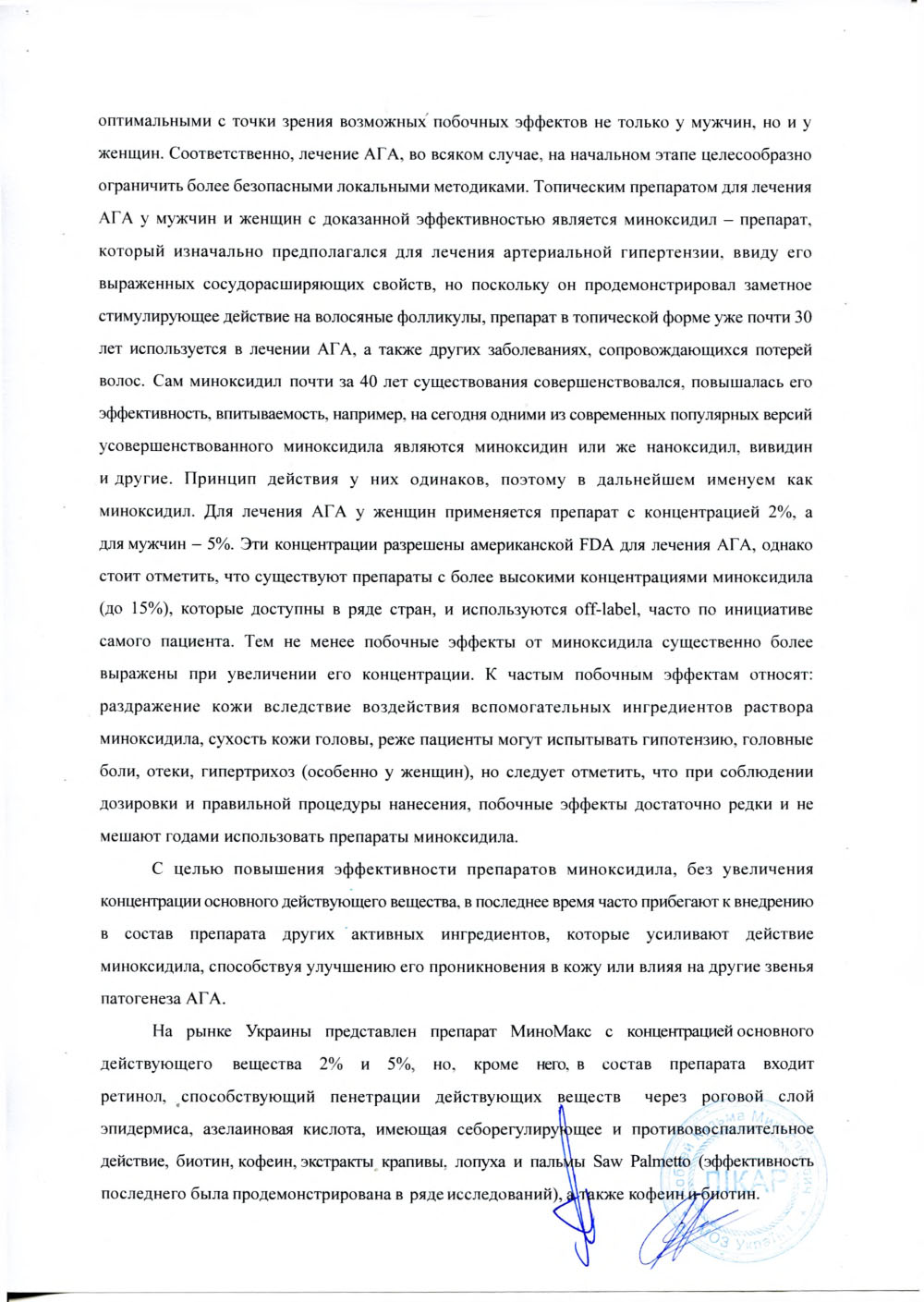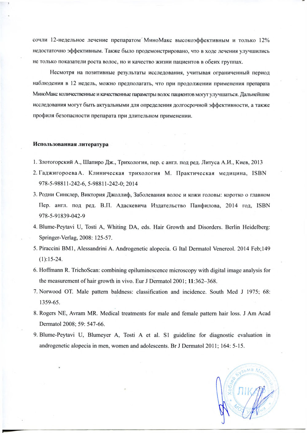 Для меня, как для врача трихолога на первом месте стояла безопасность препарата. А это очень большая ответственность, что ложится на врача. Главное не навредить! Миномакс тут на высоте В Украине просто не существует аналогов. За все время его применения, у моих пациентов ниодного побочного эффекта
